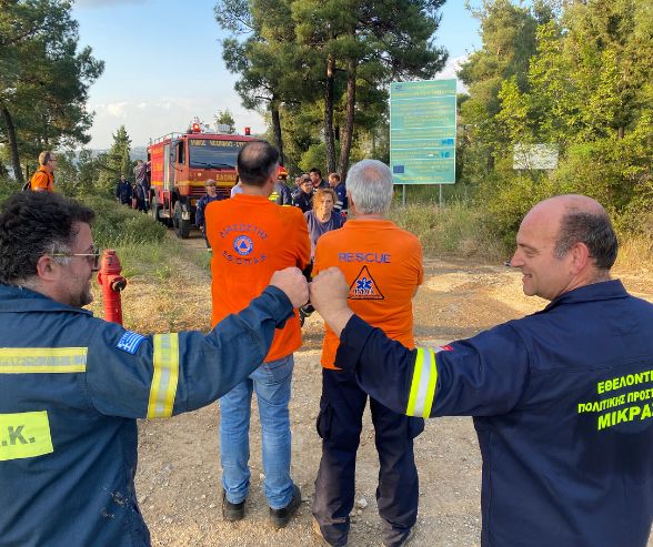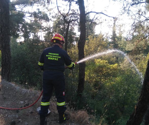 Συμμετέχουν εθελοντικές ομάδες, μέλη της Ομοσπονδίας Ε.Ο.Π.Π. (Ελληνική Ομοσπονδία Εθελοντικών Οργανώσεων Πολιτικής Προστασίας), με εκπαίδευση στα υδροφόρα οχήματα της ΕΔΟΜΑΚ, της ΕΘΕΛΟΔ και της ομάδας Μίκρας.