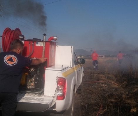 Γρήγορα τέθηκε υπό έλεγχο. Λίγο μετά την δεύτερη αναπλήρωση νερού, νέος συναγερμός εξαιτίας μεγάλης και επικίνδυνης φωτιάς, σε χωράφια στην περιοχή Τριαδίου.
