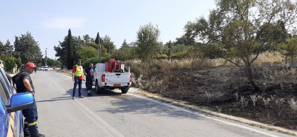 Επιτόπου έφθασαν άμεσα, 4 μέλη μας μαζί με το πυροσβεστικό όχημα της ομάδας. Βοήθησαν ενεργά και σημαντικά στην κατάσβεση, πριν λάβει επικίνδυνη επέκταση σε γειτονικά χωράφια.