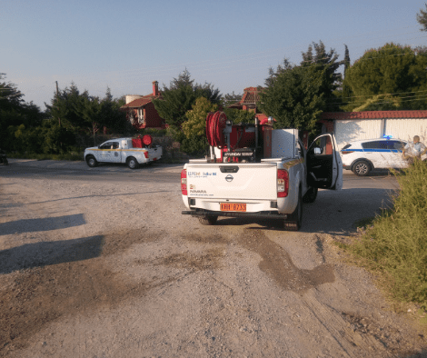 Στην προσπάθεια κατάσβεσης, μετά από κλήση μας για βοήθεια, συμμετείχε ενεργά και η ομάδα της Θέρμης, με μέλη της και με όλα τα διαθέσιμα πυροσβεστικά οχήματα του Δήμου.