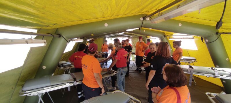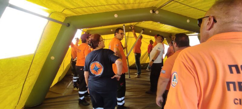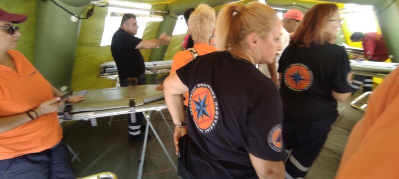 Το Ειδικό Τμήμα Ιατρικής Καταστροφών (ΕΤΙΚ) του παραρτήματος Θεσσαλονίκης πραγματοποιεί ασκήσεις προσομοίωσης για του εθελοντές πολιτικής προστασίας.