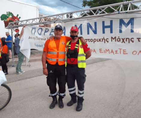 Συνολικά στην πορεία μνήμης κινητοποιήθηκαν 32 εθελοντές, από άποψη μέσων 1 όχημα ATV, 1 μηχανή, 3 οχήματα 4Χ4, 3 ποδήλατα,1 όχημα με κατασβεστική ικανότητα, πλήρης εξοπλισμός διάσωσης και 2 φορητοί αυτόματοι εξωτερικοί απινιδωτές. Επίσης ένα ασθενοφόρο, ένας γιατρός και η Τροχαία.