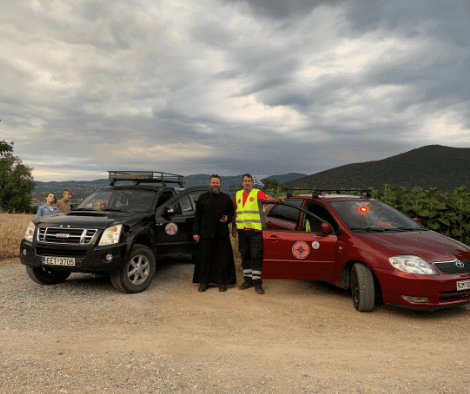 Ο εξοπλισμός μας: ένας απινιδωτής, 4 οργανωμένα πλήρως φαρμακεία και το κατασβεστικό όχημά μας.